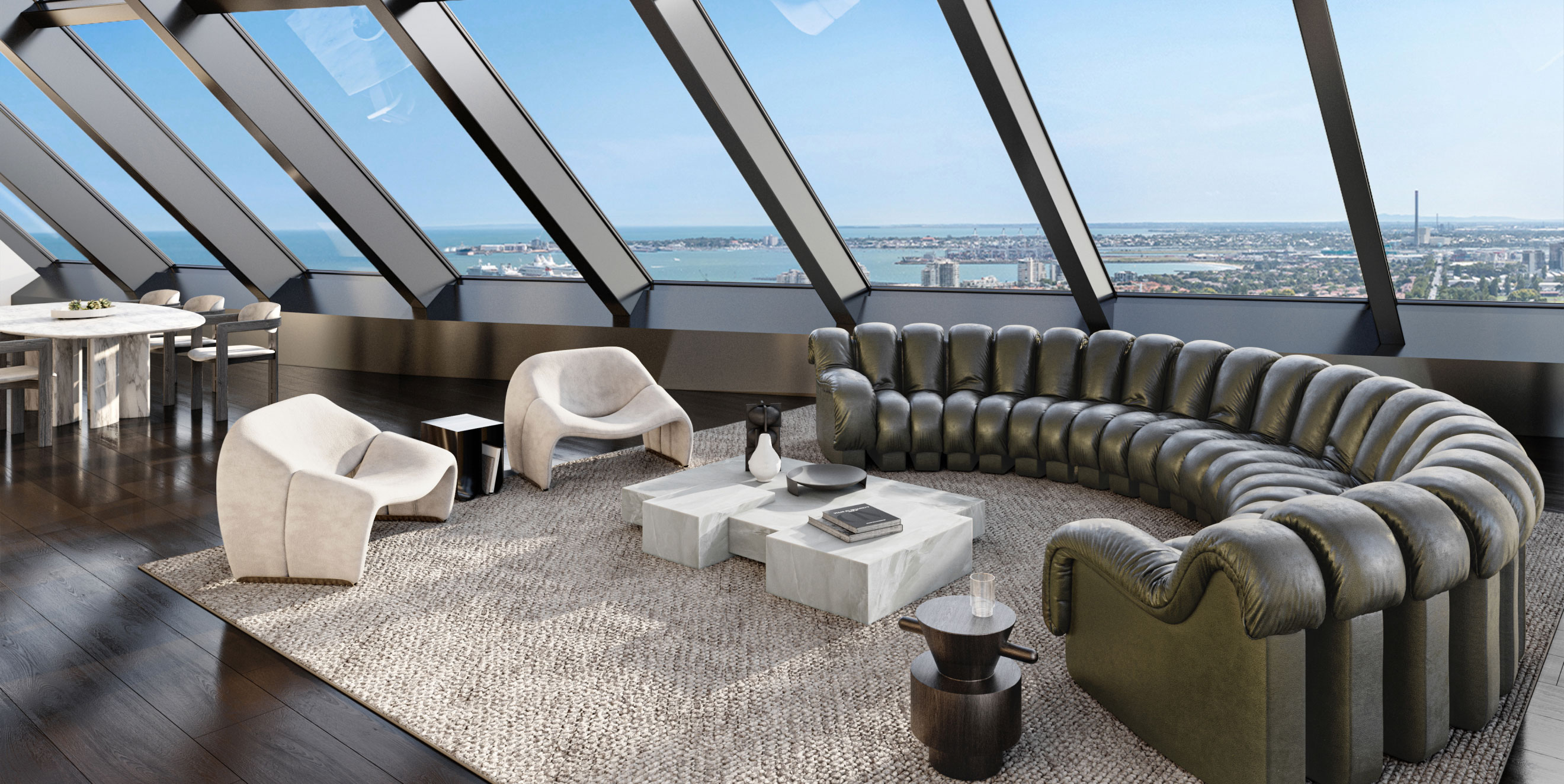 A selection of just 15 sub penthouses & a one-of-a-kind penthouse; set over 2 levels, occupy an exclusive position across levels 25-30. Defined by large terraces, masterful use of proportion and a rich material palette, each 3 bedroom home sits amidst uninterrupted water, park & city views.